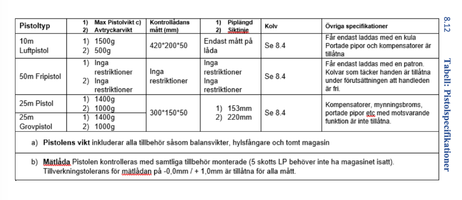 Kortfattat vapenregler för dessa grenar: